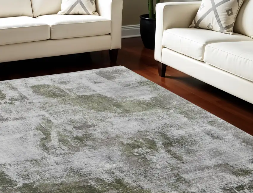 Gray Silver and Green Ikat Power Loom Area Rug With Fringe