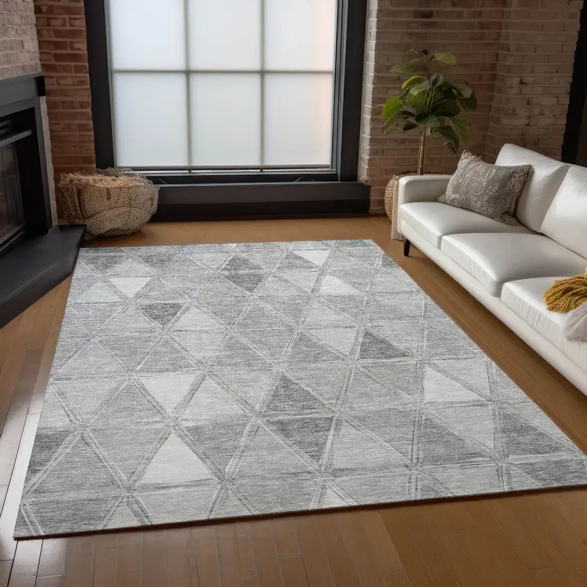 Gray Silver And Ivory Geometric Washable Indoor Outdoor Area Rug