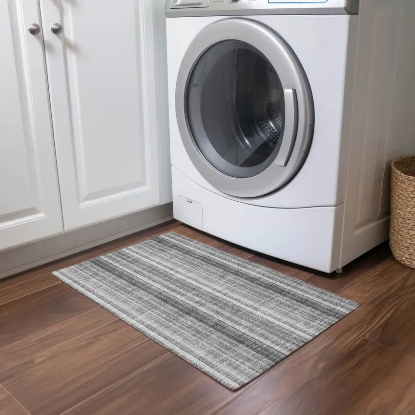 Gray Striped Washable Non Skid Indoor Outdoor Area Rug