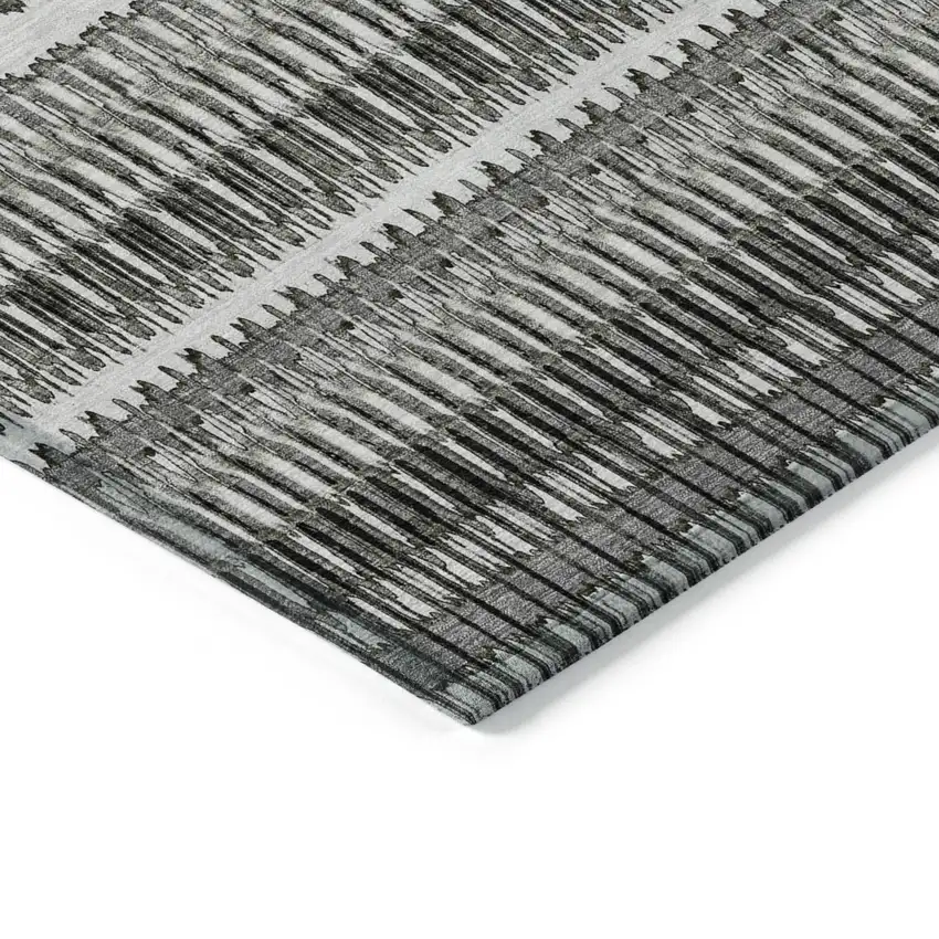 Gray Striped Washable Non Skid Indoor Outdoor Area Rug