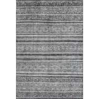 Gray Teal And Gold Striped Washable Area Rug With UV Protection