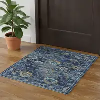 Gray Yellow And Blue Oriental Area Rug With Fringe