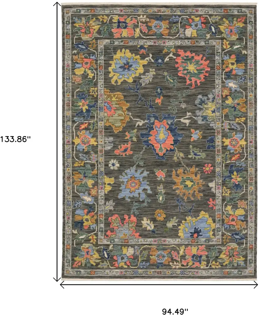 Gray Yellow And Orange Oriental Area Rug With Fringe