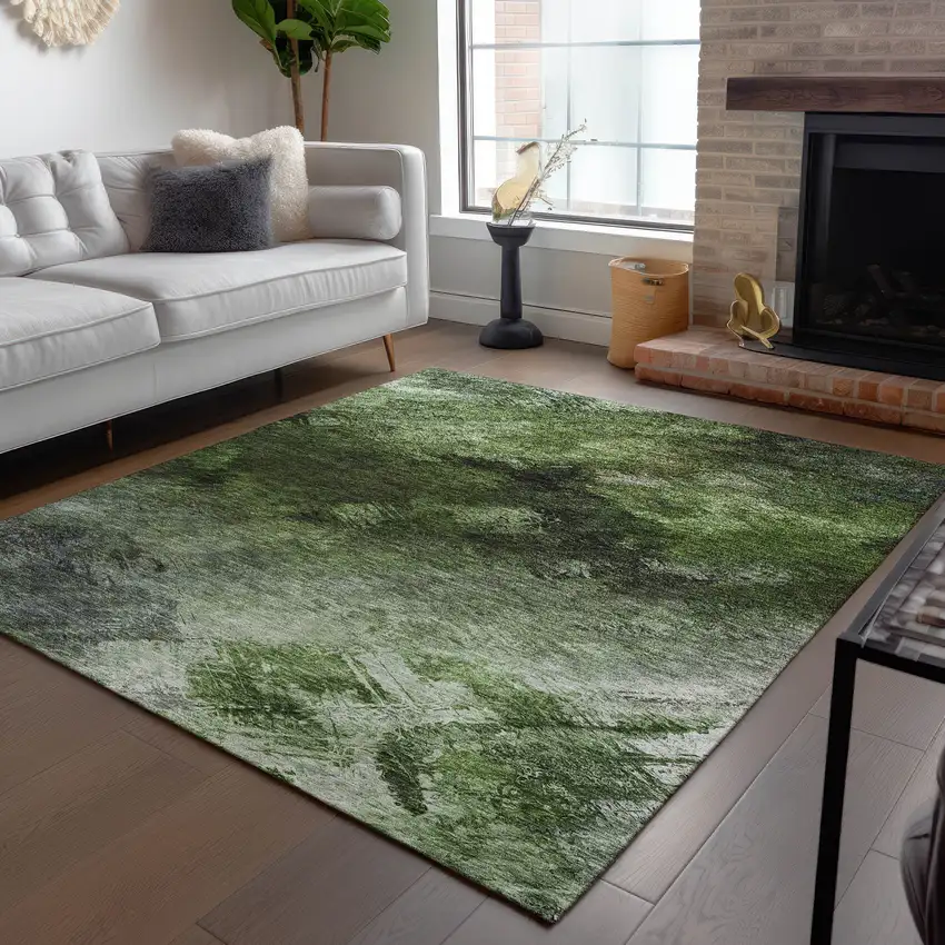 Add great coloration and comfortable texture to your space with this 9-foot x 12-foot green abstract washable non skid indoor outdoor area rug. This rectangle shaped rug features a abstract design that will work well both indoors or out. A classic shape marries with good looking design for your living room, hall, bedroom, porch, patio, or poolside. Ideal for outdoor spaces or high traffic areas with kids and pets, this rug is made from heavy duty polyester that is stain resistant to help repel water, dirt, and stains. Makes a great way to dress up your patio, porch, or poolside, but also works well as a durable and easy to maintain option in the kitchen, family room, or mudroom. 108-inch h x 144-inch w x 0.19-inch d