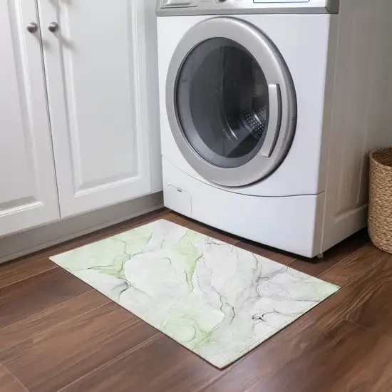 Green Abstract Washable Non Skid Indoor Outdoor Area Rug