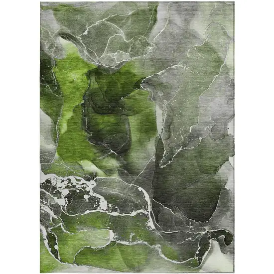 Green Abstract Washable Non Skid Indoor Outdoor Area Rug