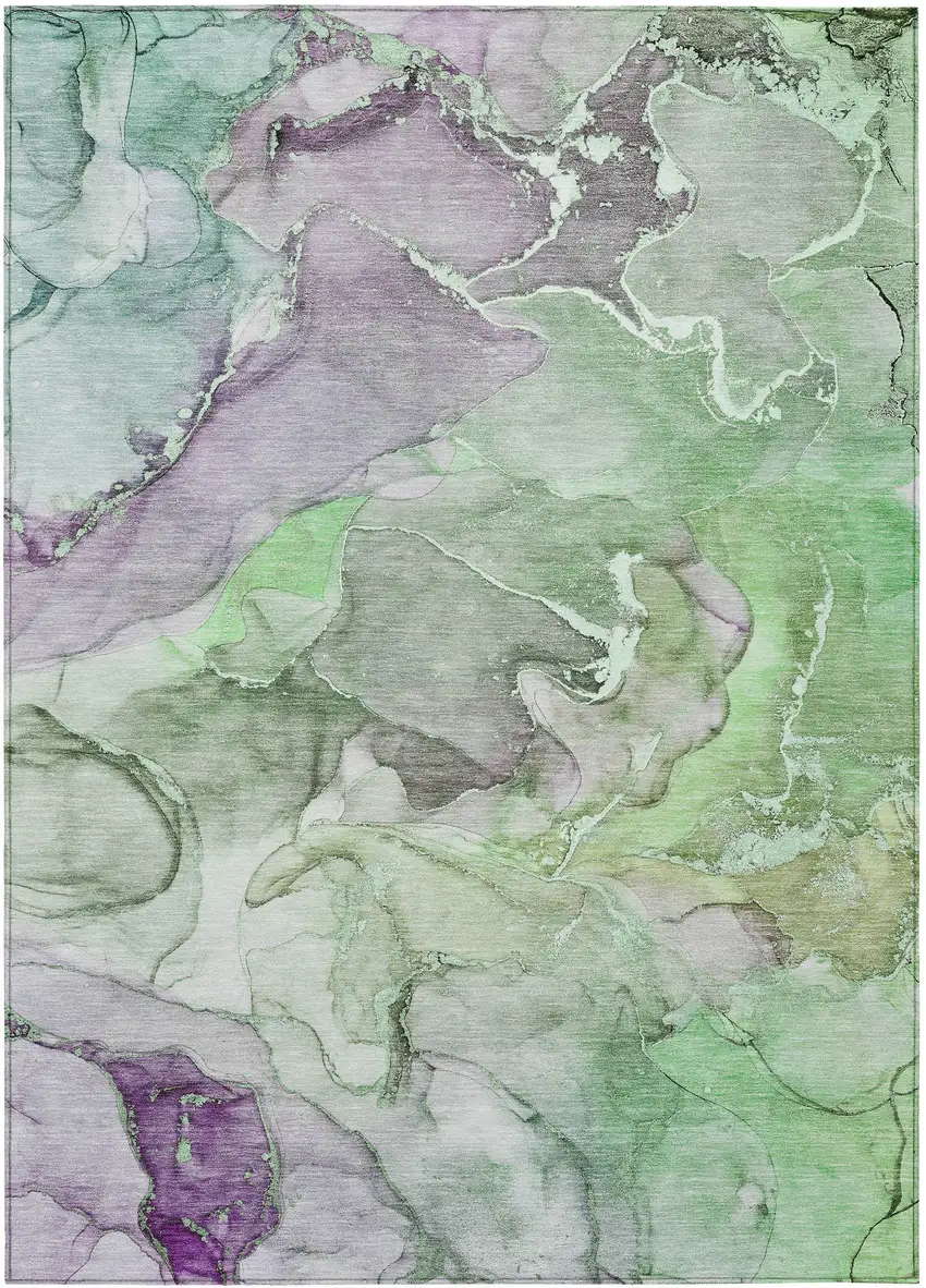 Green Abstract Washable Non Skid Indoor Outdoor Area Rug
