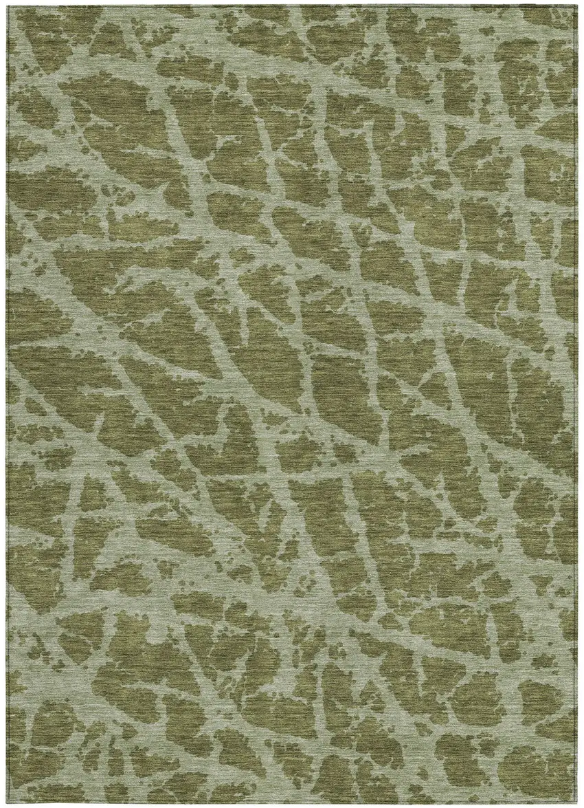 Green Abstract Washable Non Skid Indoor Outdoor Area Rug