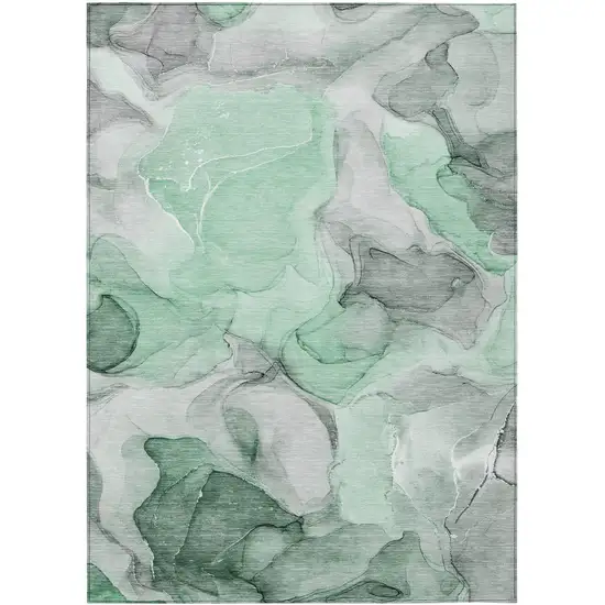 Green Abstract Washable Non Skid Indoor Outdoor Area Rug