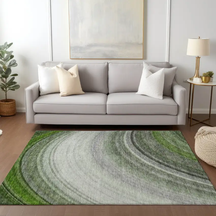 Green Abstract Washable Non Skid Indoor Outdoor Area Rug