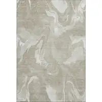 Green And Beige Abstract Washable Area Rug With UV Protection