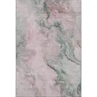 Green And Beige Abstract Washable Area Rug With UV Protection