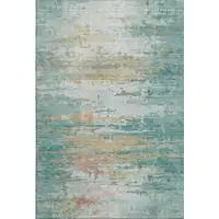 Green And Beige Floral Washable Area Rug With UV Protection
