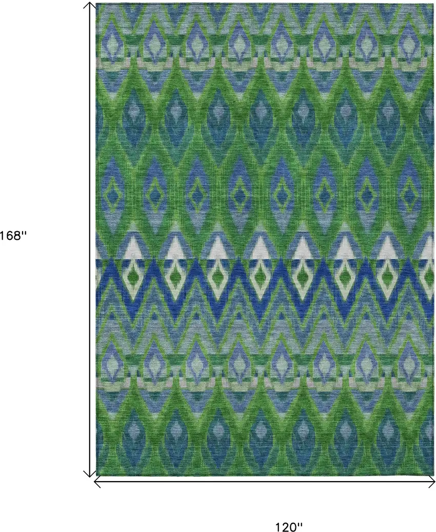Set an inviting tone in your space with this 10-foot x 14-foot green and blue southwestern washable indoor outdoor area rug. This rectangle shaped rug features a southwestern design that will work well both indoors or out. A classic shape marries with good looking design for your living room, hall, bedroom, porch, patio, or poolside. Ideal for outdoor spaces or high traffic areas with kids and pets, this rug is made from heavy duty polyester that is stain resistant to help repel water, dirt, and stains. Makes a great way to dress up your patio, porch, or poolside, but also works well as a durable and easy to maintain option in the kitchen, family room, or mudroom. 120-inch h x 168-inch w x 0.19-inch d.