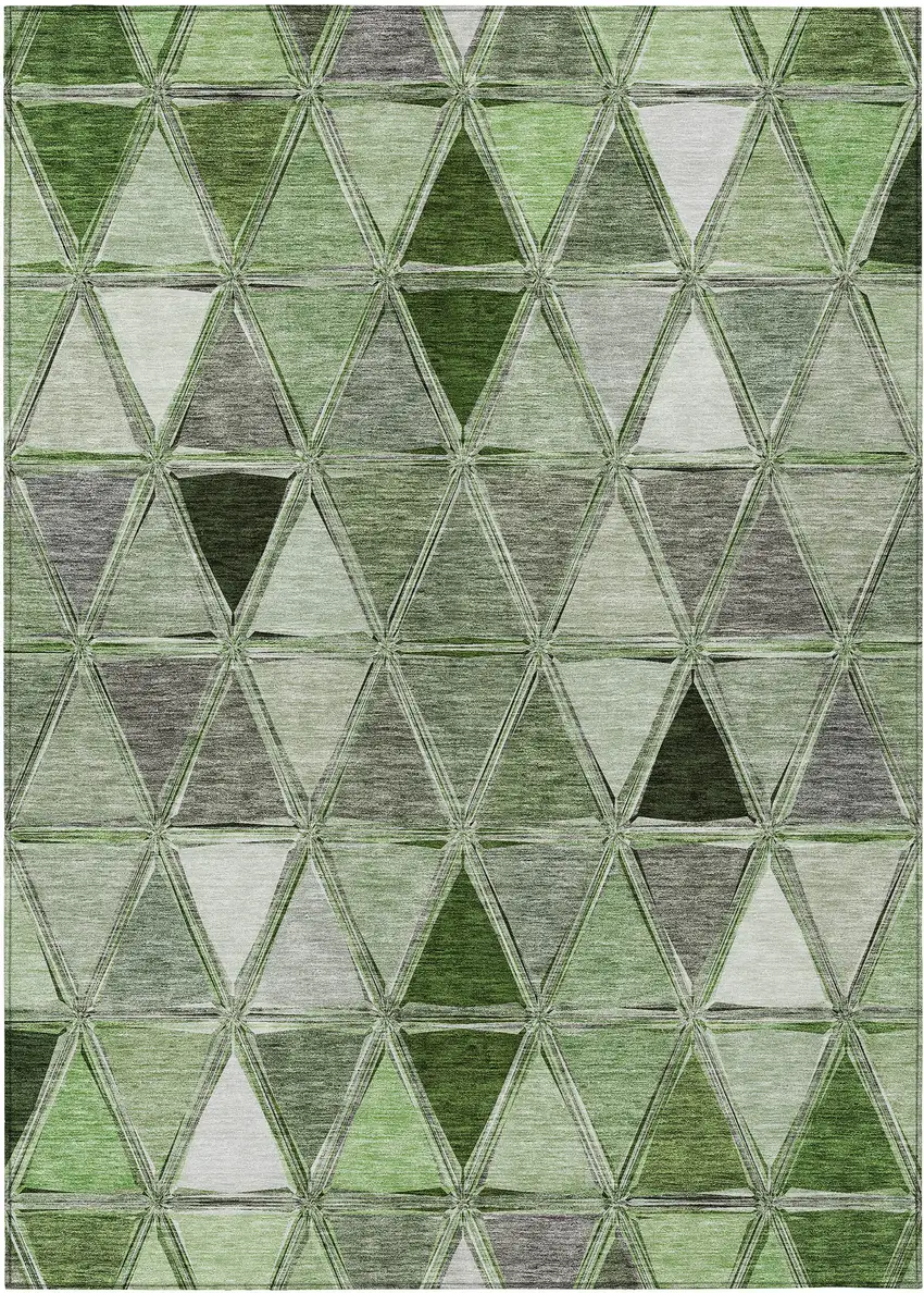 Add some artistry to your room with this 9-foot x 12-foot green and fern green geometric washable indoor outdoor area rug. This rectangle shaped rug features a geometric design that will work well both indoors or out. A classic shape marries with good looking design for your living room, hall, bedroom, porch, patio, or poolside. Ideal for outdoor spaces or high traffic areas with kids and pets, this rug is made from heavy duty polyester that is stain resistant to help repel water, dirt, and stains. Versatile in use, durable, and easy to maintain, this rug is an ideal solution to add a decorative and inviting touch to your indoor or outdoor space. 108-inch h x 144-inch w x 0.19-inch d.