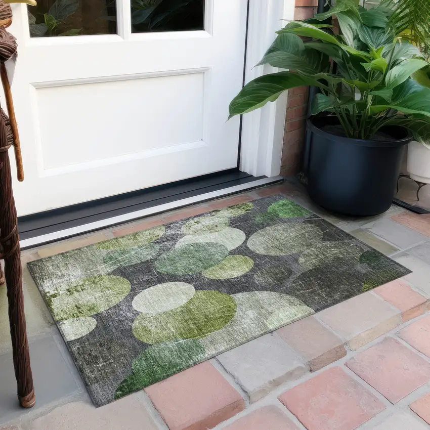 Green and Gray Abstract Washable Non Skid Indoor Outdoor Area Rug