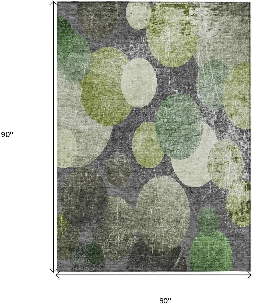 Green and Gray Abstract Washable Non Skid Indoor Outdoor Area Rug
