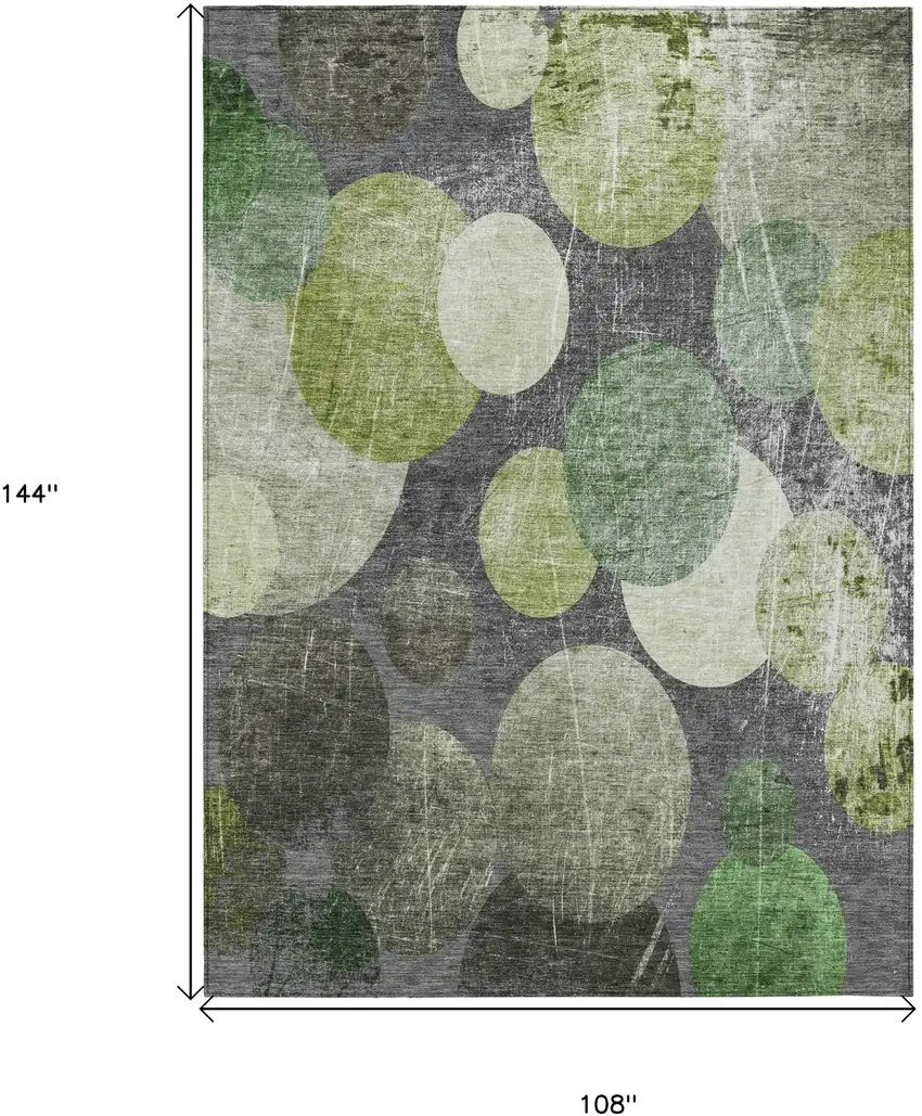 Set an inviting tone in your space with this 9-foot x 12-foot green and gray abstract washable stain resistant non skid indoor outdoor area rug. This rectangle shaped rug features a abstract design in green and gray to give it visual interest. A classic shape marries with good looking design for your space ideal for spaces with kids and pets, this rug is stain resistant to help repel stains and spilled liquids. Place this area rug against a hardwood or tile floor and it will enliven your living space with style and sophistication. 108-inch H x 144-inch W x 0.19-inch D