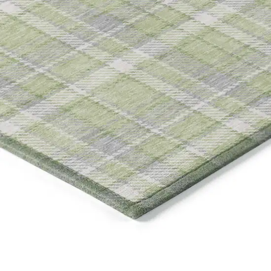 Add great coloration and comfortable texture to your space with this 10-foot x 14-foot green and gray plaid washable stain resistant non skid indoor outdoor area rug. This rectangle shaped rug features a plaid design in green and gray to give it visual interest. A classic shape marries with good looking design for your space ideal for spaces with kids and pets, this rug is stain resistant to help repel stains and spilled liquids. Place this area rug against a hardwood or tile floor and it will enliven your living space with style and sophistication. 120-inch H x 168-inch W x 0.19-inch D