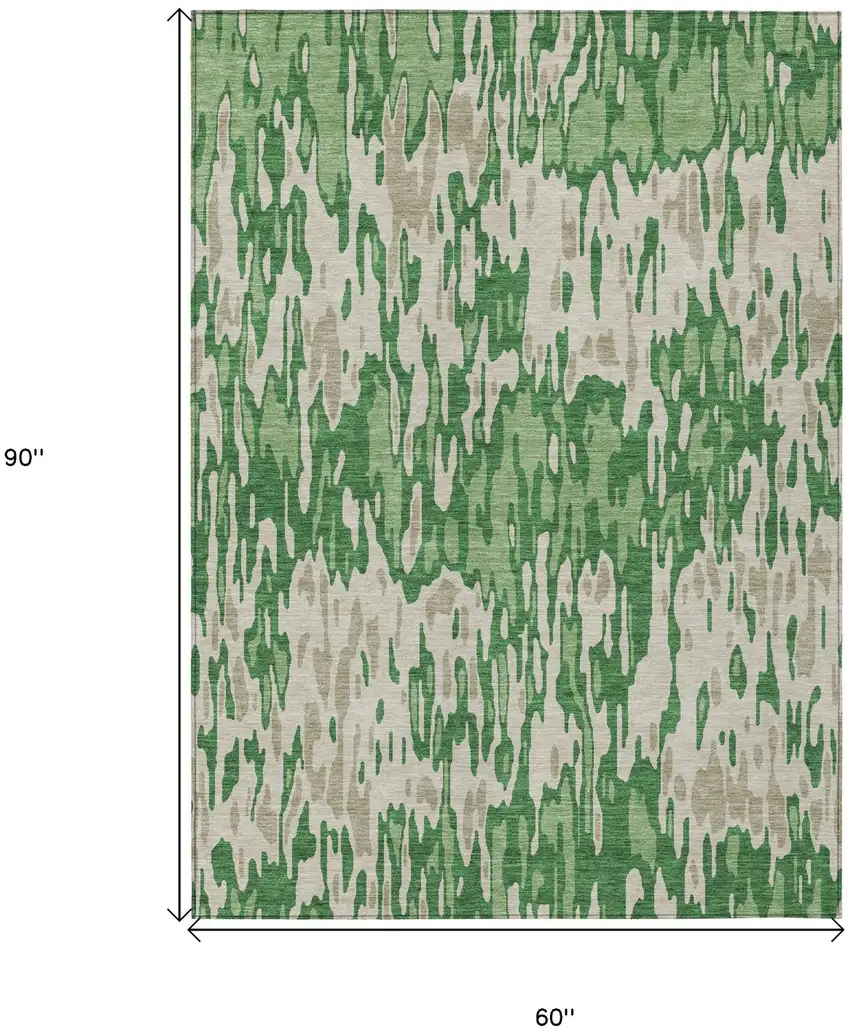 Green And Gray Striped Washable Indoor Outdoor Area Rug