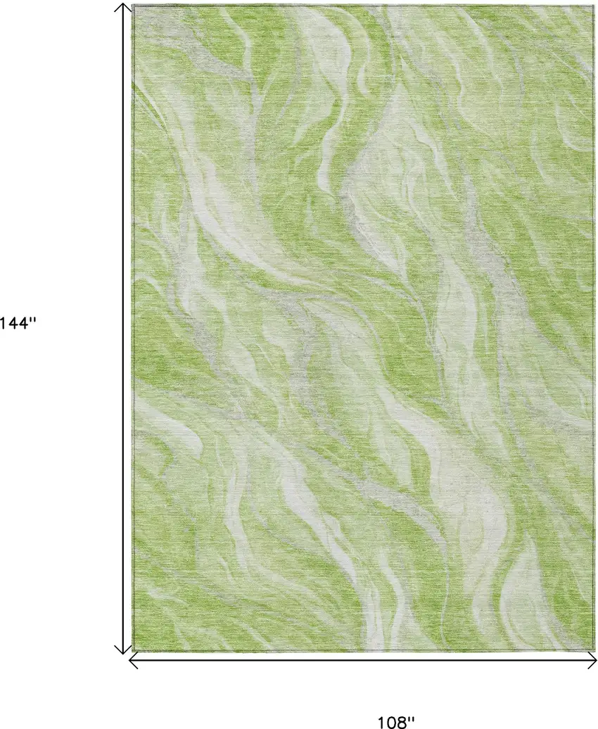Add some artistry to your room with this 9-foot x 12-foot green and ivory abstract washable indoor outdoor area rug. This rectangle shaped rug features a abstract design that will work well both indoors or out. A classic shape marries with good looking design for your living room, hall, bedroom, porch, patio, or poolside. Ideal for outdoor spaces or high traffic areas with kids and pets, this rug is made from heavy duty polyester that is stain resistant to help repel water, dirt, and stains. Versatile in use, durable, and easy to maintain, this rug is an ideal solution to add a decorative and inviting touch to your indoor or outdoor space. 108-inch h x 144-inch w x 0.19-inch d.