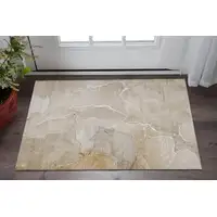 Green And Ivory Floral Washable Area Rug With UV Protection