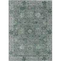Green And Ivory Floral Washable Indoor Outdoor Area Rug