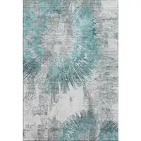 Green And Ivory Geometric Washable Area Rug With UV Protection