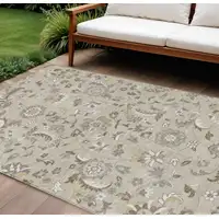 Green And Ivory Geometric Washable Indoor Outdoor Area Rug