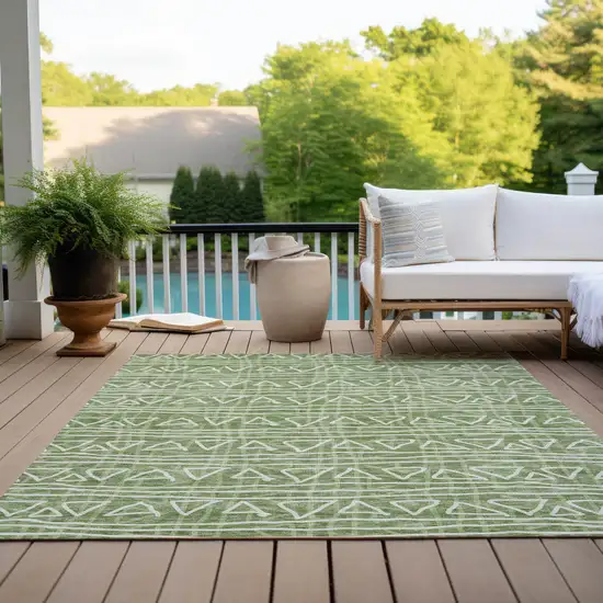 Add some artistry to your room with this 9-foot x 12-foot green and ivory geometric washable indoor outdoor area rug. This rectangle shaped rug features a geometric design that will work well both indoors or out. A classic shape marries with good looking design for your living room, hall, bedroom, porch, patio, or poolside. Ideal for outdoor spaces or high traffic areas with kids and pets, this rug is made from heavy duty polyester that is stain resistant to help repel water, dirt, and stains. Versatile in use, durable, and easy to maintain, this rug is an ideal solution to add a decorative and inviting touch to your indoor or outdoor space. 108-inch h x 144-inch w x 0.19-inch d.