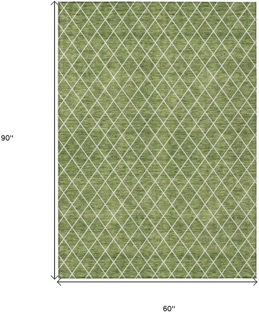 Green And Ivory Geometric Washable Indoor Outdoor Area Rug