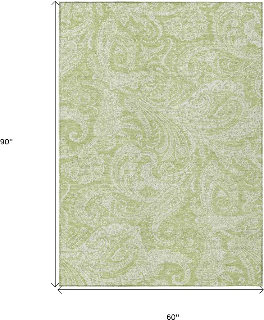 Green And Ivory Paisley Washable Indoor Outdoor Area Rug