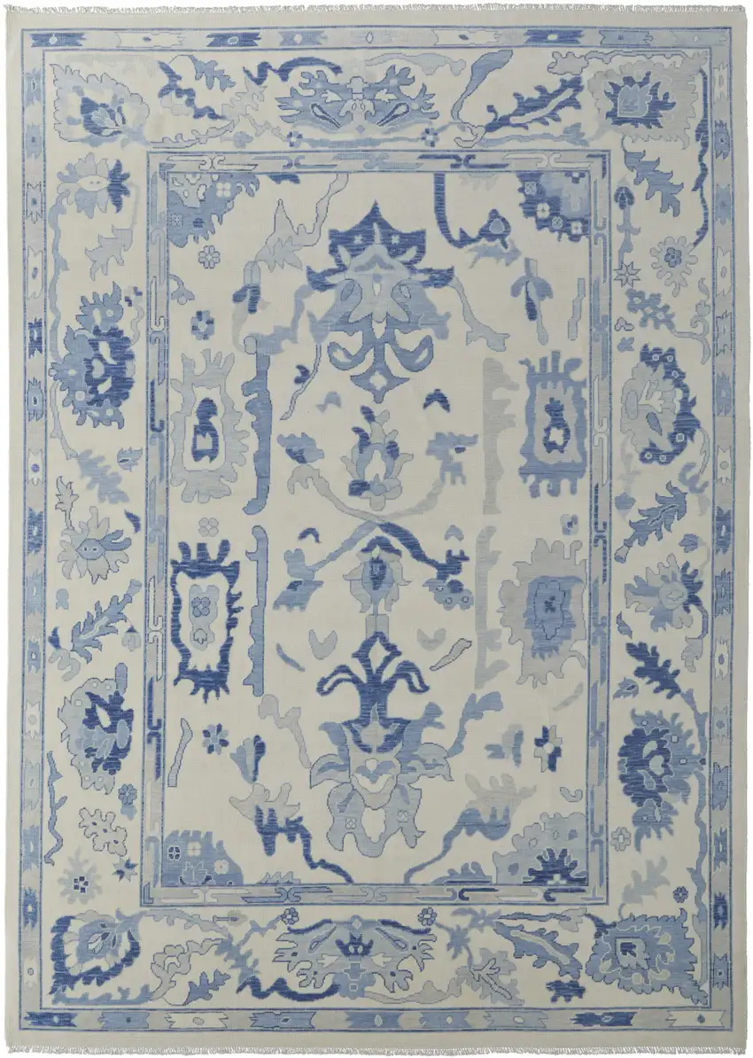 Green and Ivory Wool Floral Hand Knotted Area Rug With Fringe