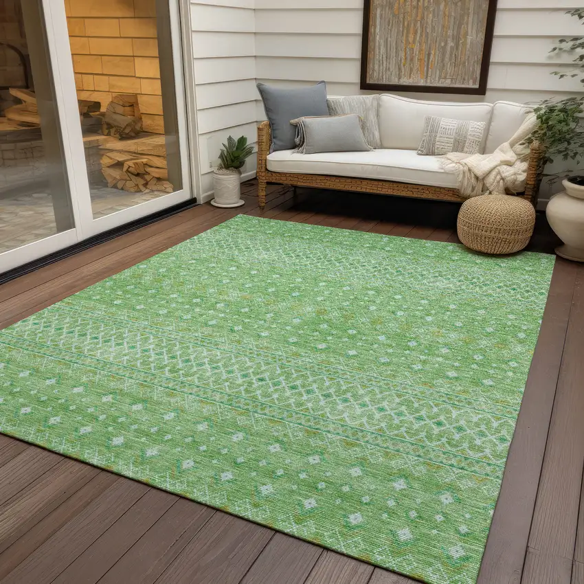 Set an inviting tone in your space with this 9-foot x 12-foot green and mint green tribal washable indoor outdoor area rug. This rectangle shaped rug features a tribal design that will work well both indoors or out. A classic shape marries with good looking design for your living room, hall, bedroom, porch, patio, or poolside. Ideal for outdoor spaces or high traffic areas with kids and pets, this rug is made from heavy duty polyester that is stain resistant to help repel water, dirt, and stains. Versatile in use, durable, and easy to maintain, this rug is an ideal solution to add a decorative and inviting touch to your indoor or outdoor space. 108-inch h x 144-inch w x 0.19-inch d.