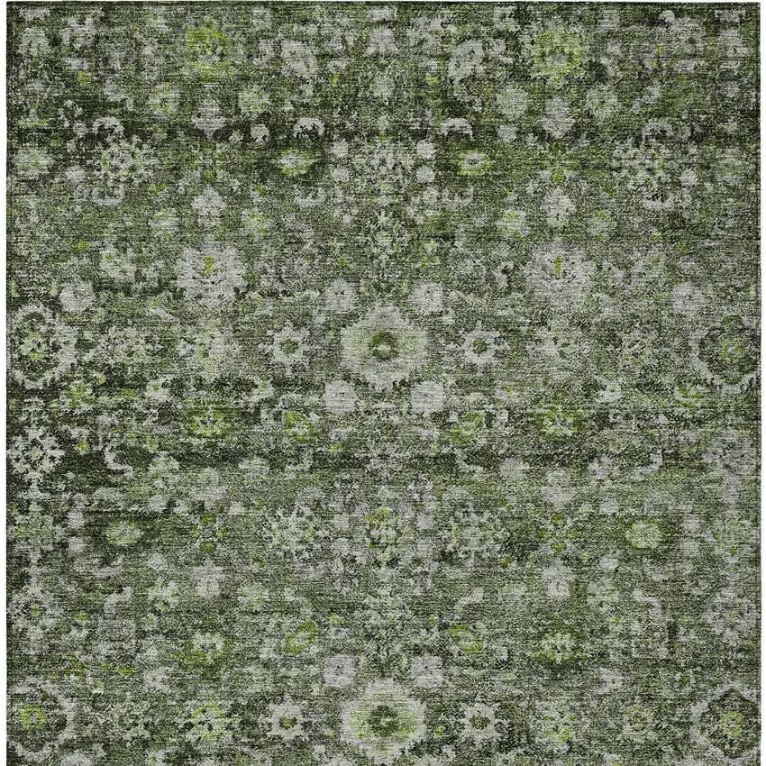 Green And Olive Green Oriental Washable Indoor Outdoor Area Rug