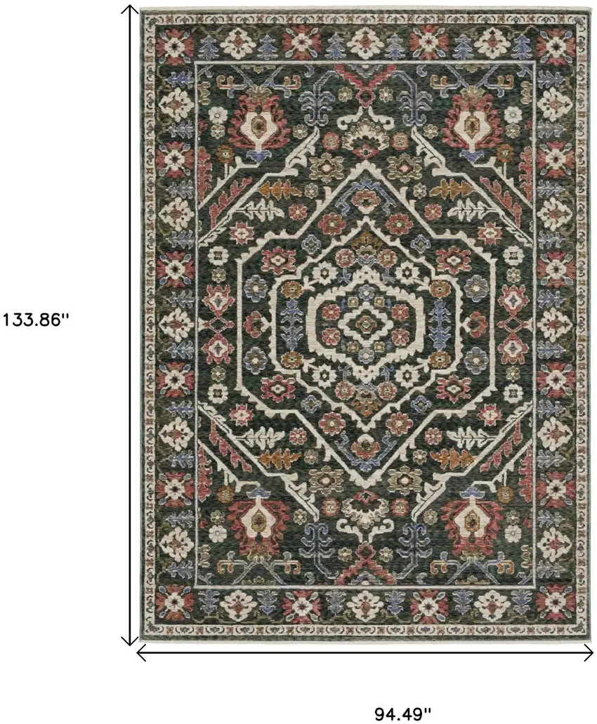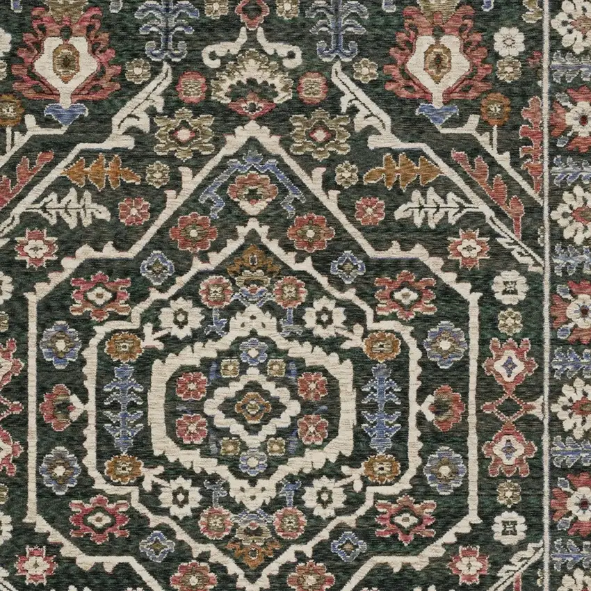 Green And Pink Floral Area Rug With Fringe