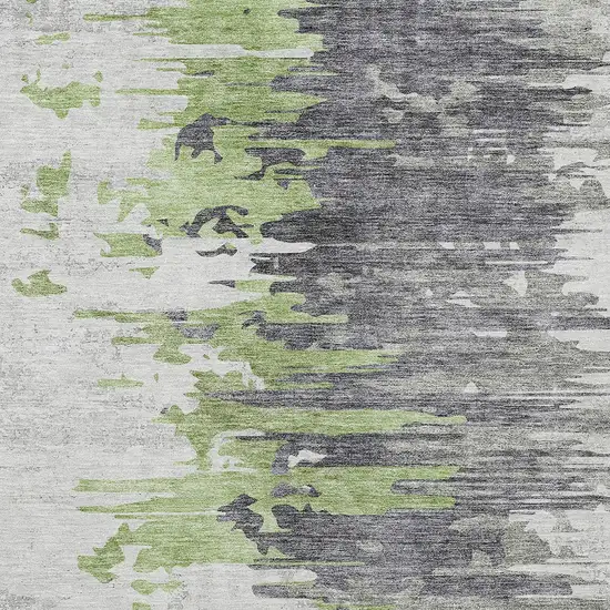 Green And Silver Abstract Washable Indoor Outdoor Area Rug