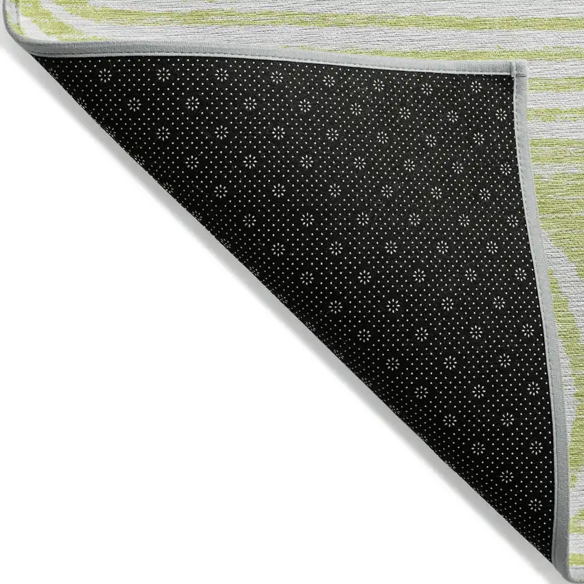 Green and White Abstract Washable Non Skid Indoor Outdoor Area Rug