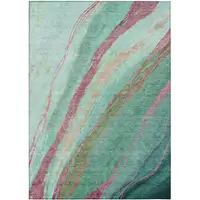 Green and White Abstract Washable Non Skid Indoor Outdoor Area Rug