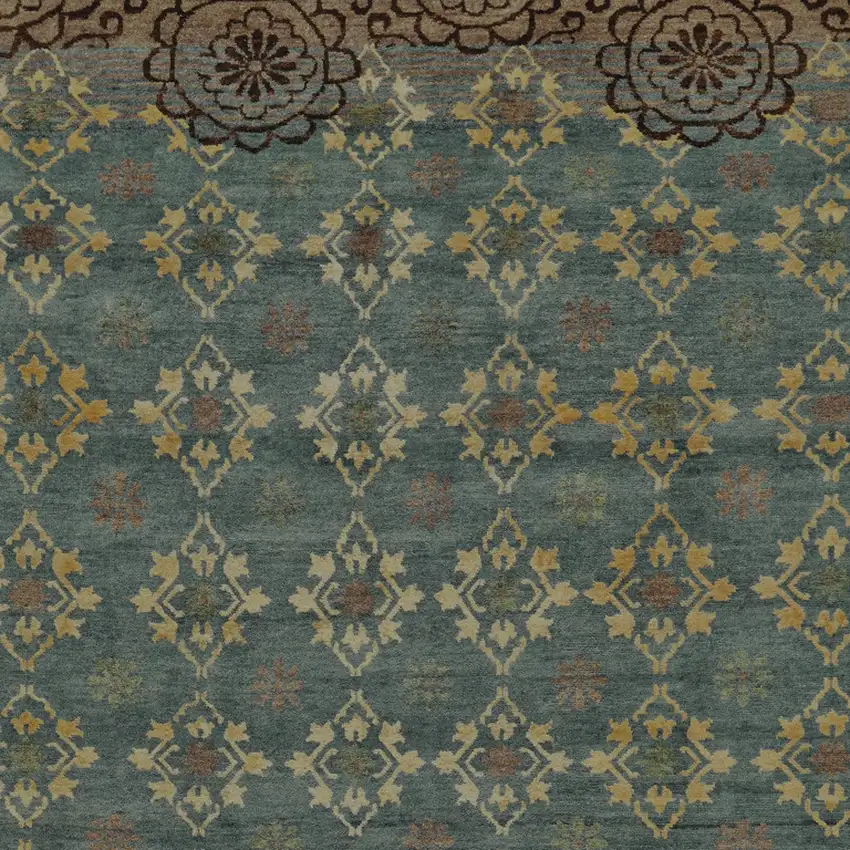 Add great coloration and comfortable texture to your space with this 6-foot x 9-foot green blue and brown floral hand knotted area rug. This rectangle shaped rug features a floral design in green blue and brown to give it visual interest. A classic shape marries with good looking design for your space crafted by skilled artisans, this hand knotted rug is genuine and unique. No two will be exactly alike. Place this area rug against a hardwood or tile floor and it will enliven your living space with style and sophistication. 66-inch H x 102-inch W x 0.39-inch D