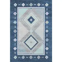 Green Blue And Pink Abstract Geometric Washable Area Rug With UV Protection