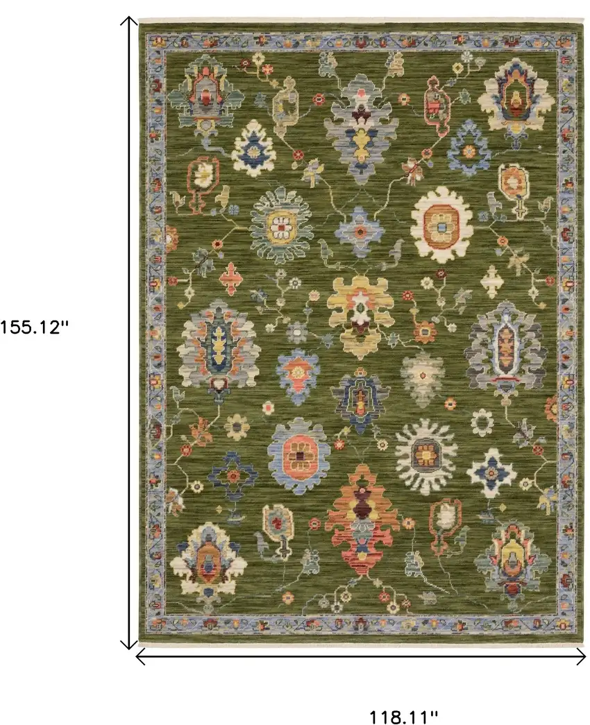 Green Blue And Yellow Oriental Area Rug With Fringe