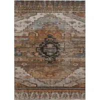 Green Copper And Beige Abstract Washable Indoor Outdoor Area Rug