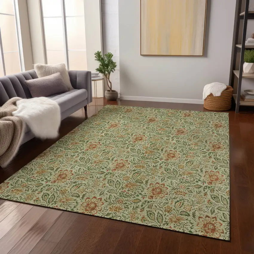 Set an inviting tone in your space with this 10-foot x 14-foot green copper and sage floral washable indoor outdoor area rug. This rectangle shaped rug features a floral design that will work well both indoors or out. A classic shape marries with good looking design for your living room, hall, bedroom, porch, patio, or poolside. Ideal for outdoor spaces or high traffic areas with kids and pets, this rug is made from heavy duty polyester that is stain resistant to help repel water, dirt, and stains. Makes a great way to dress up your patio, porch, or poolside, but also works well as a durable and easy to maintain option in the kitchen, family room, or mudroom. 120-inch h x 168-inch w x 0.19-inch d.