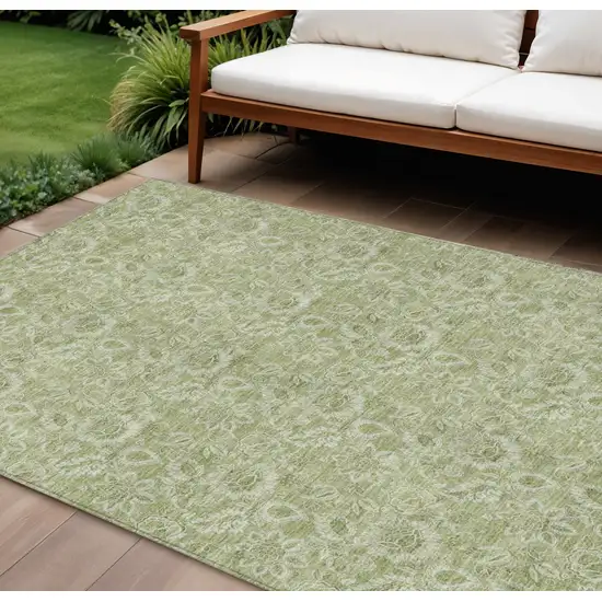 Add great coloration and comfortable texture to your space with this 9-foot x 12-foot green floral washable indoor outdoor area rug. This rectangle shaped rug features a floral design that will work well both indoors or out. A classic shape marries with good looking design for your living room, hall, bedroom, porch, patio, or poolside. Ideal for outdoor spaces or high traffic areas with kids and pets, this rug is made from heavy duty polyester that is stain resistant to help repel water, dirt, and stains. Makes a great way to dress up your patio, porch, or poolside, but also works well as a durable and easy to maintain option in the kitchen, family room, or mudroom. 108-inch h x 144-inch w x 0.19-inch d.