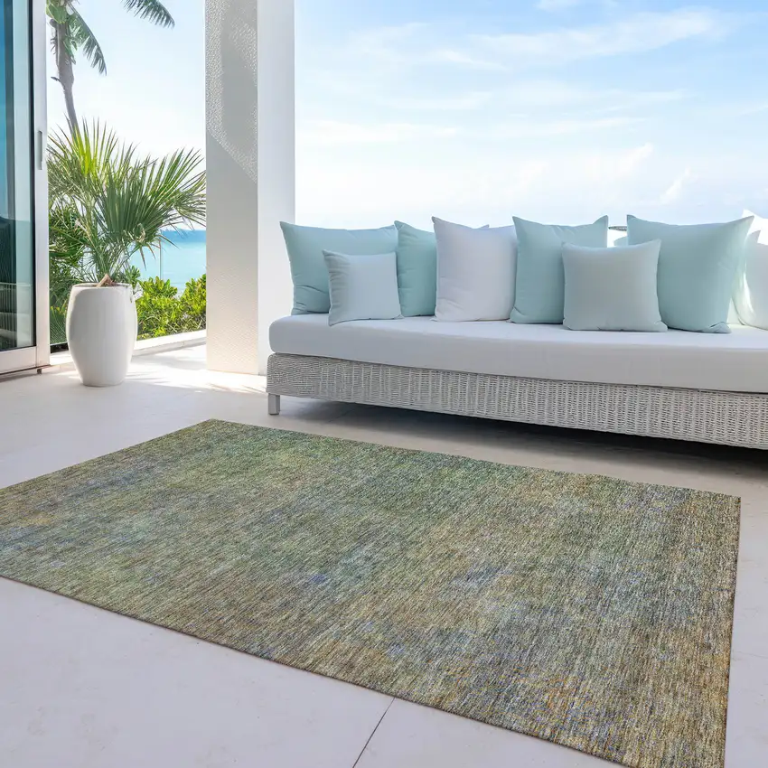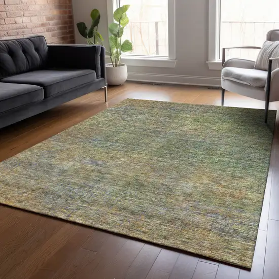 Green Gold And Charcoal Abstract Washable Indoor Outdoor Area Rug