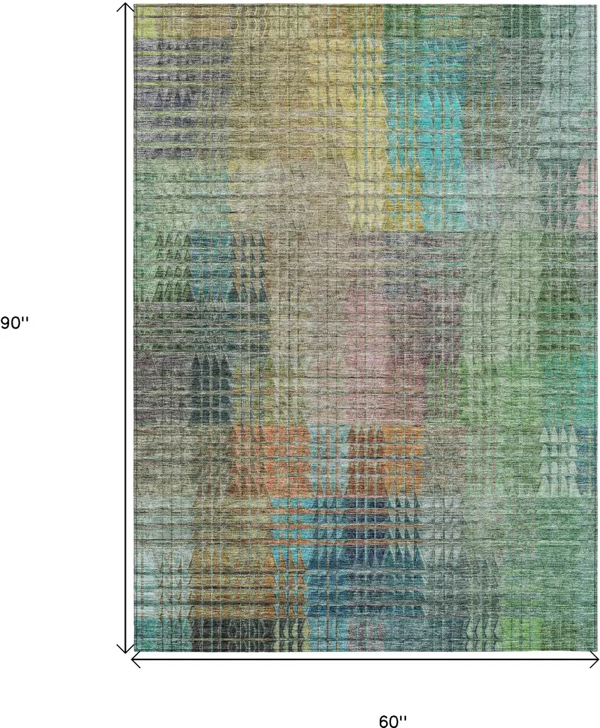 Set an inviting tone in your space with this 5-foot x 8-foot green gold and teal blue abstract washable indoor outdoor area rug. This rectangle shaped rug features a abstract design that will work well both indoors or out. A classic shape marries with good looking design for your living room, hall, bedroom, porch, patio, or poolside. Ideal for outdoor spaces or high traffic areas with kids and pets, this rug is made from heavy duty polyester that is stain resistant to help repel water, dirt, and stains. Versatile in use, durable, and easy to maintain, this rug is an ideal solution to add a decorative and inviting touch to your indoor or outdoor space. 60-inch h x 90-inch w x 0.19-inch d.