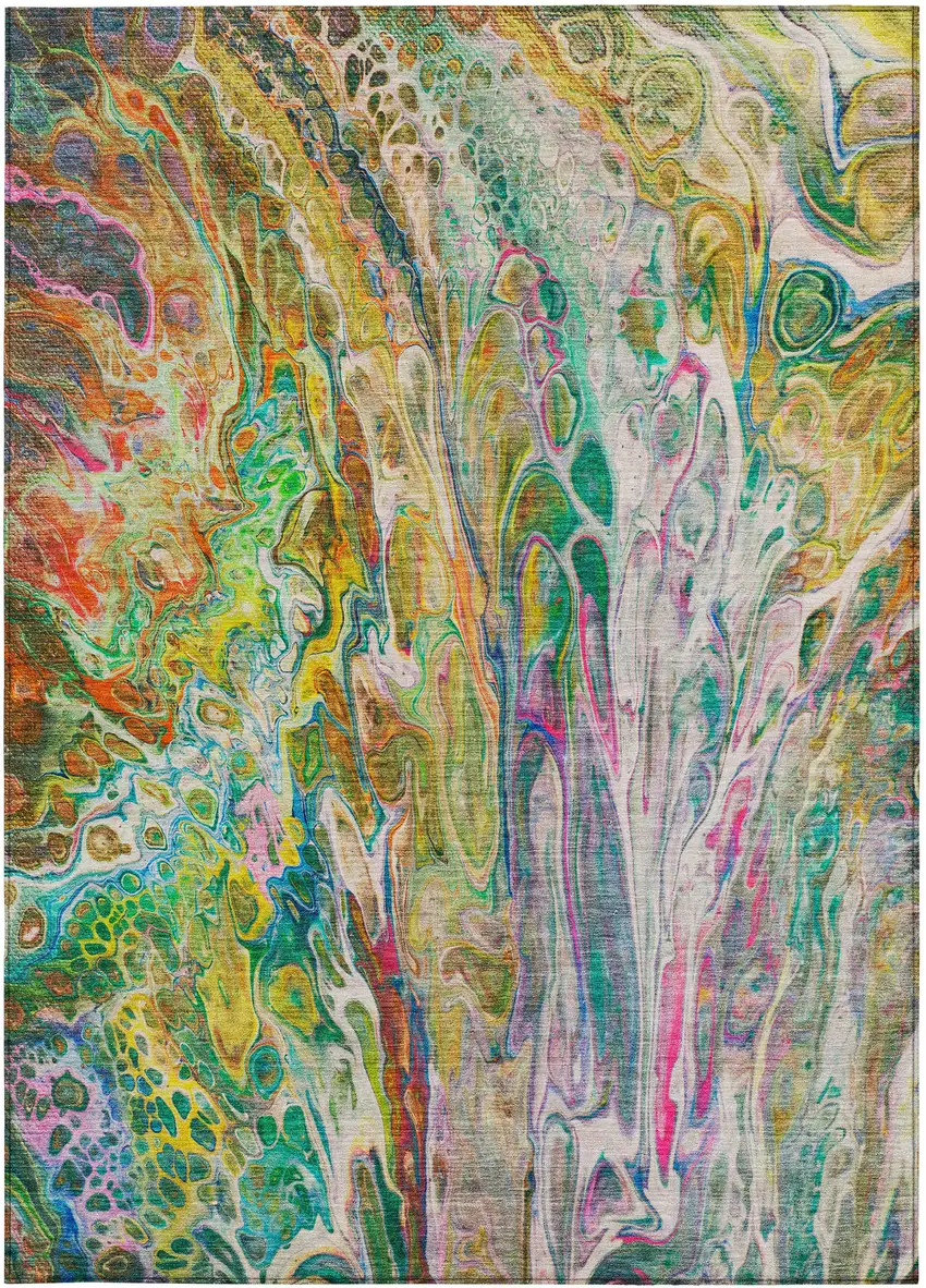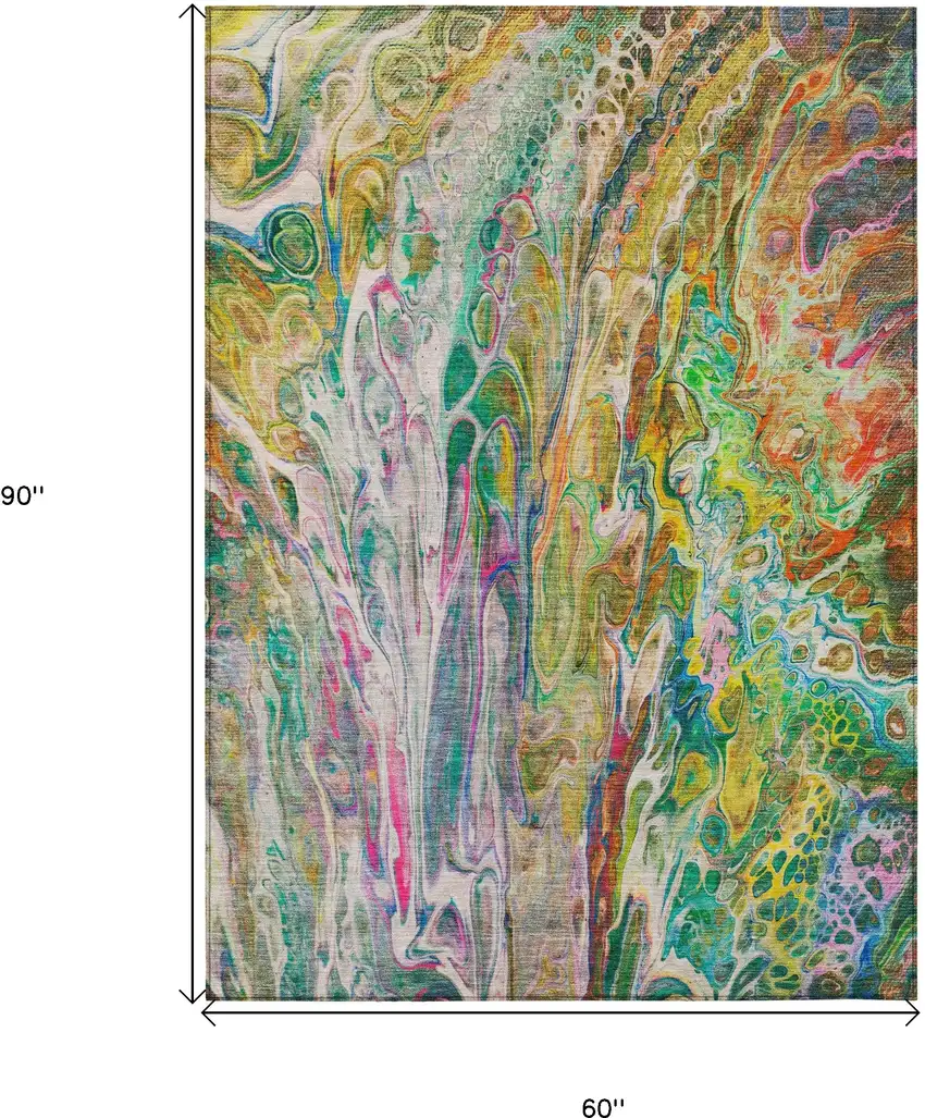 Green Gold And White Abstract Washable Indoor Outdoor Area Rug