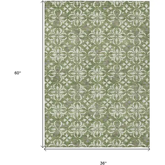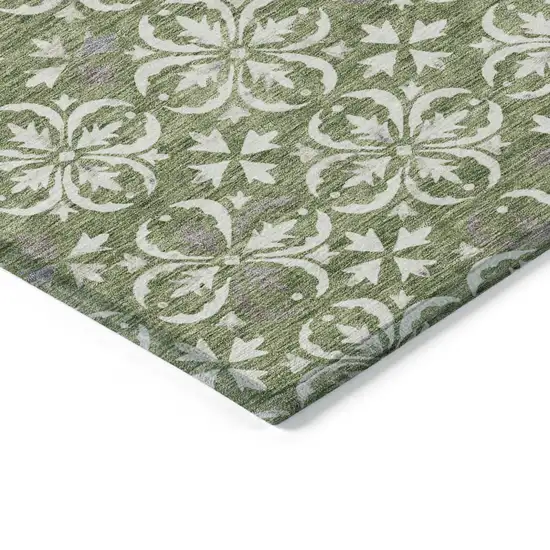 Green Gray And Ivory Floral Washable Indoor Outdoor Area Rug