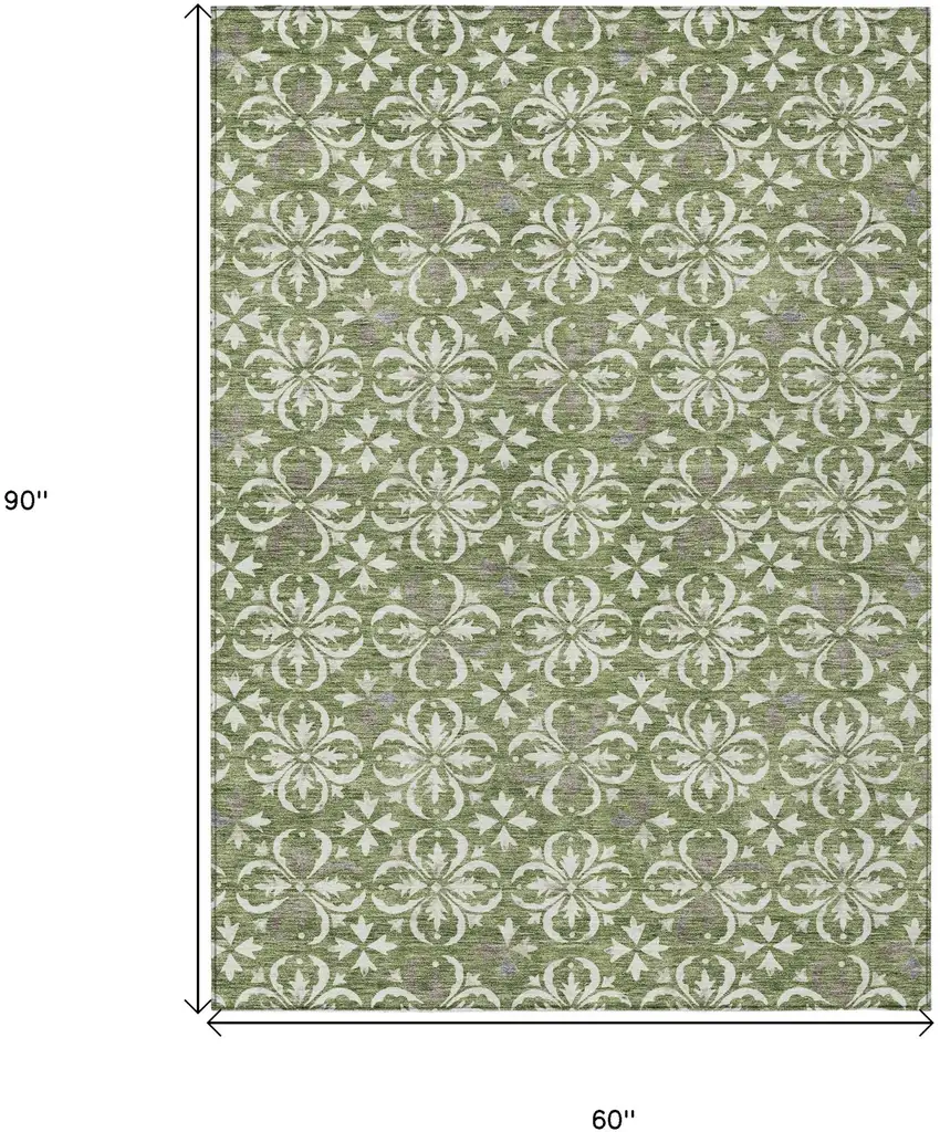 Green Gray And Ivory Floral Washable Indoor Outdoor Area Rug